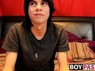 Nach dem Inverview packt der junge schwarzhaarige Twink sein Teil aus und wichst wie wild